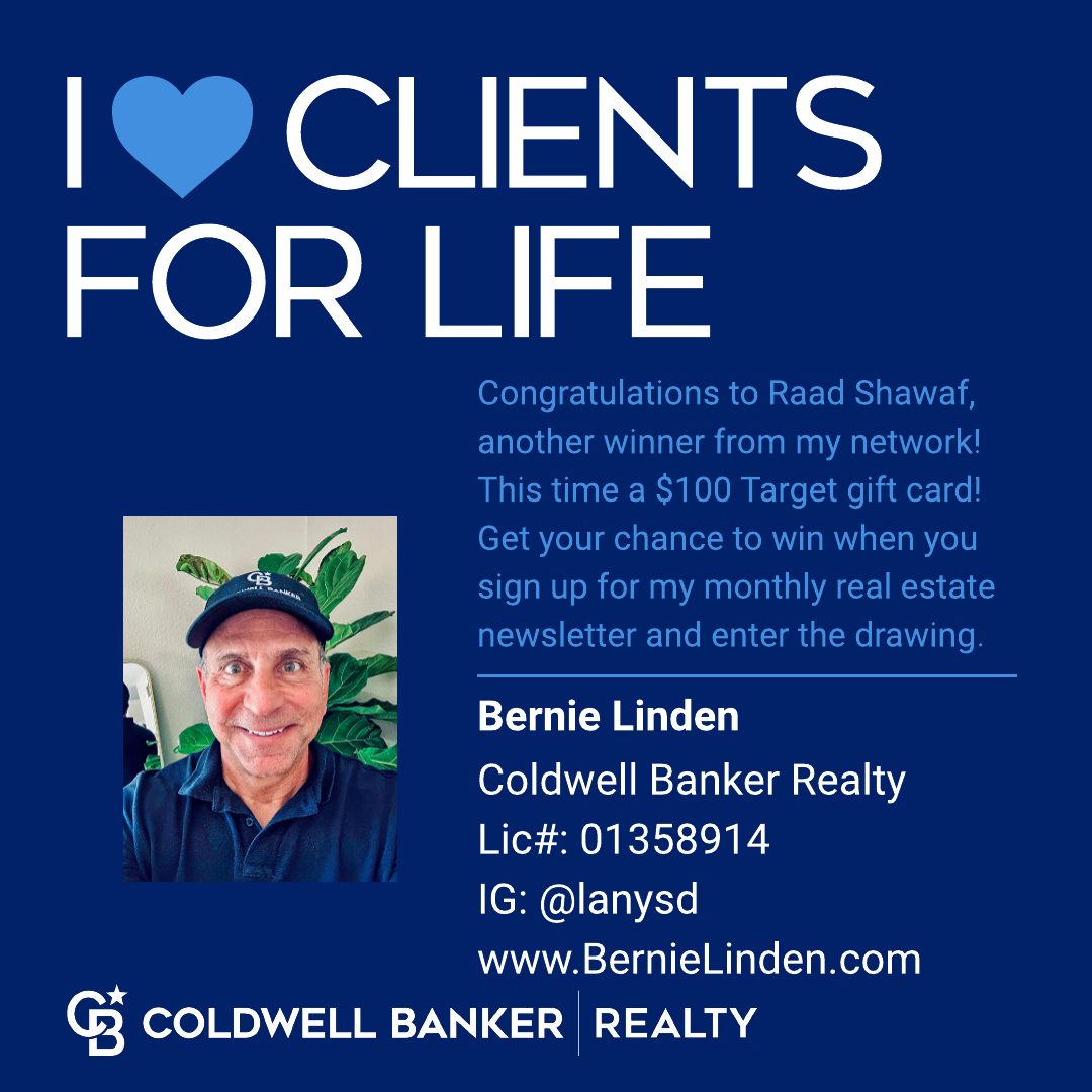 I’m excited that another person in my network – Raad Shawaf – has won Coldwell Banker’s “Clients for Life” prize. This time a $100 Target Gift Card…did someone say just in time for back to school!?