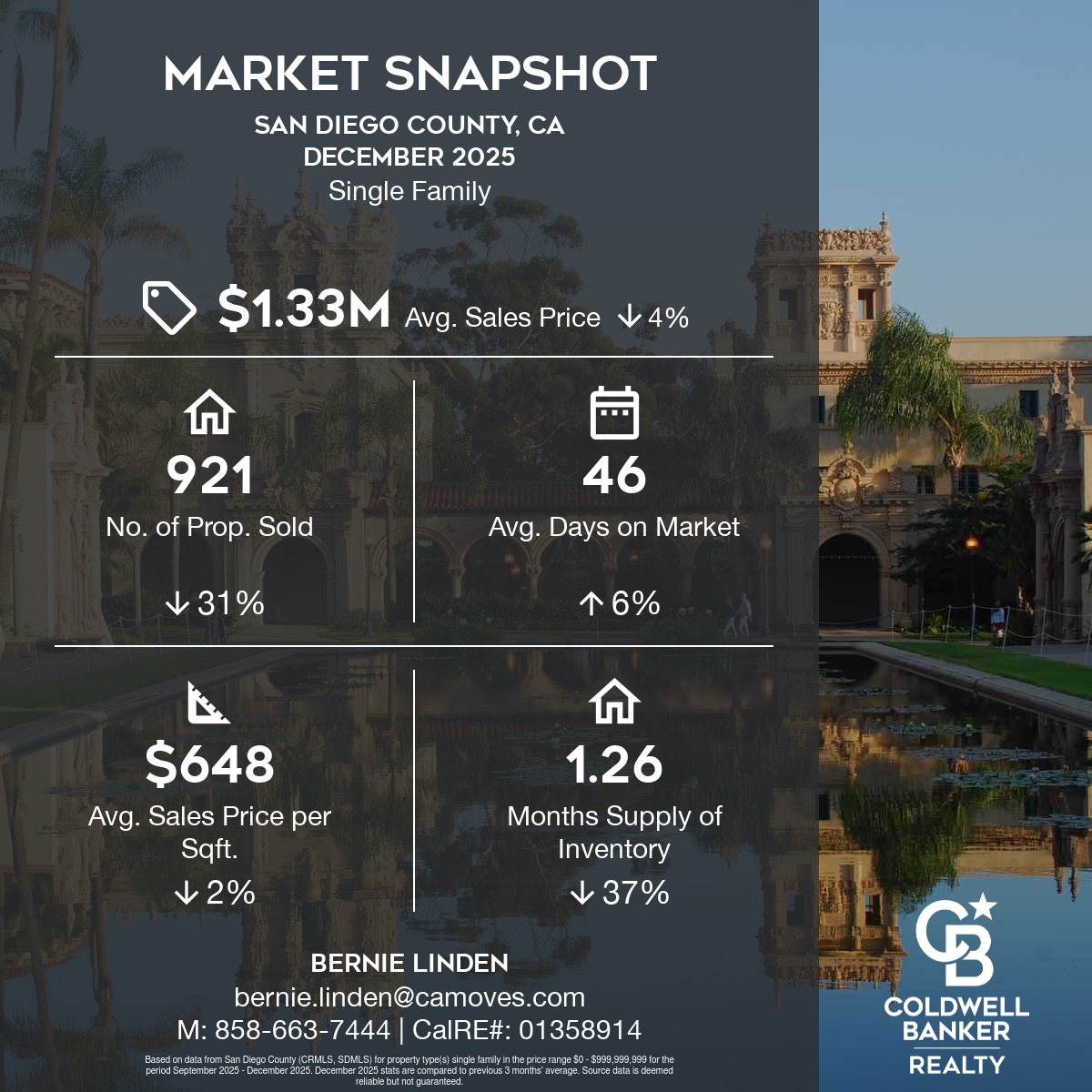 San Diego County Real Estate Market Update: December 2025 Single‑Family Homes
