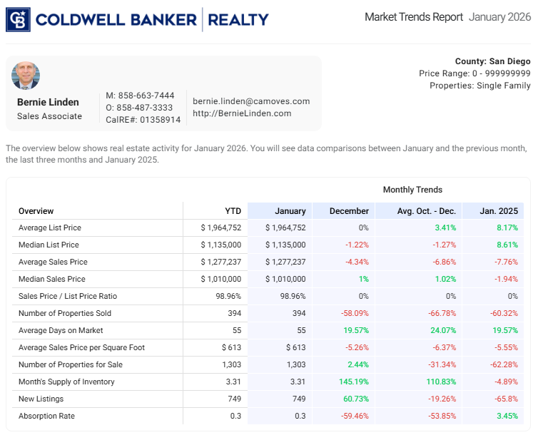As we move into 2026, many San Diego homeowners are asking the same question: Is this a good time to sell? January’s data offers some clear—and very interesting—answers.