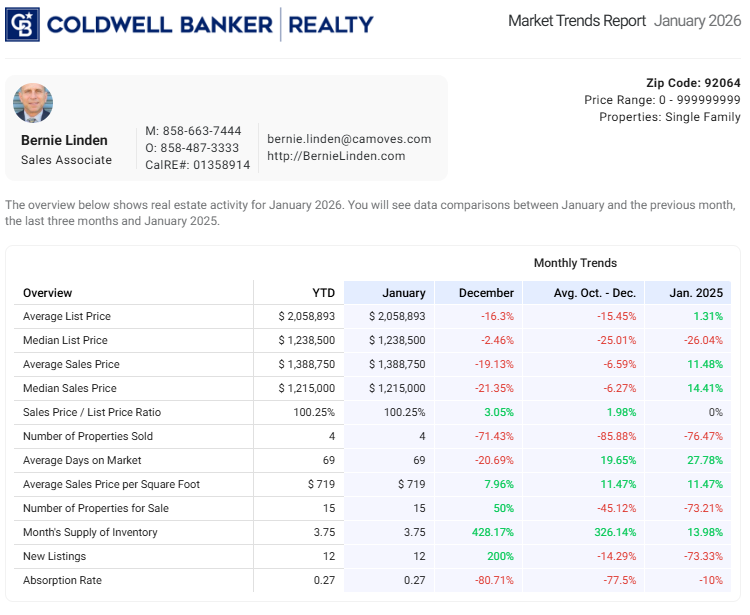 Poway Real Estate Market Update for 92064: What Today’s Numbers Mean for Home Sellers