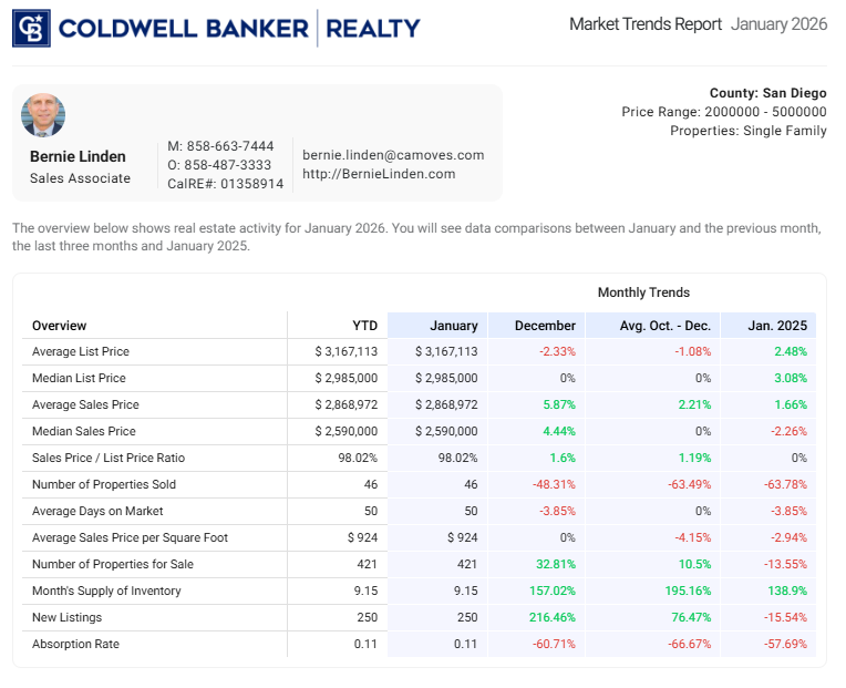 Is Now the Right Time to Buy or Sell a $2M–$5M Home in San Diego? January Data Reveals Key Trends
