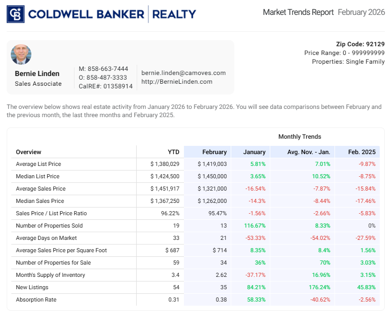 If you’re thinking about buying or selling a home in San Diego, especially in the sought‑after community of Rancho Peñasquitos (Zip Code 92129), the latest market trends offer valuable insight. Below is an in‑depth look at how the single‑family home market performed in February 2026—and what these trends may mean for your next move.