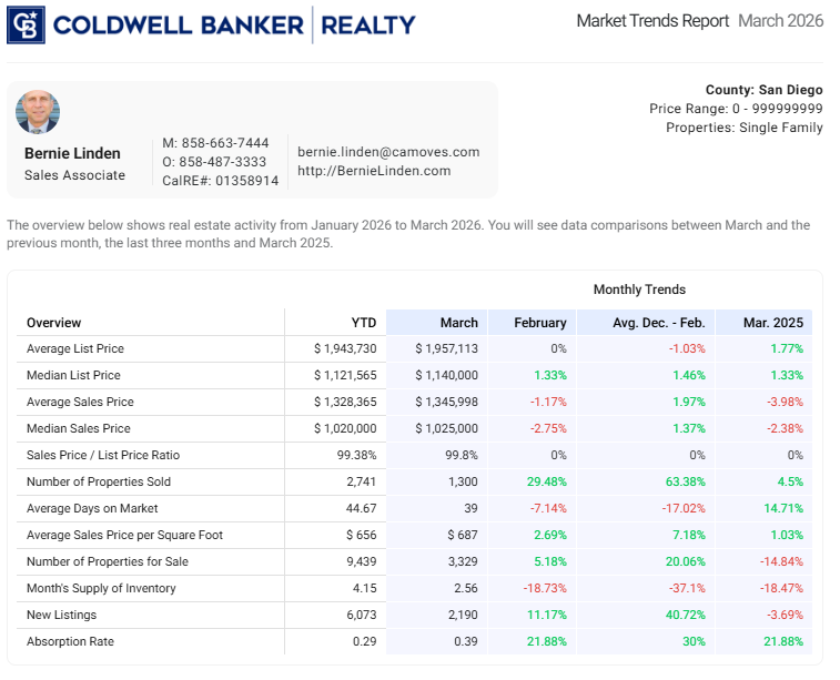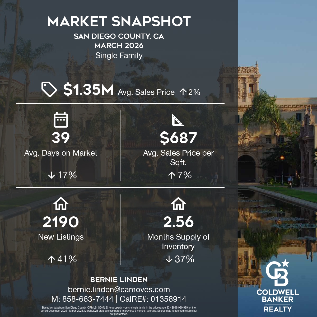 Using the latest San Diego County Single‑Family Market data from March 2026, here are the three key takeaways shaping today’s market—and what they signal for the months ahead.